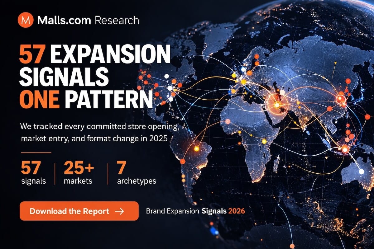 Malls.com tracked 57 verified brand expansion signals globally in 2025. Not press releases. Not "considering expansion." Committed capital. Operational launches. Signed real estate. Opened stores.